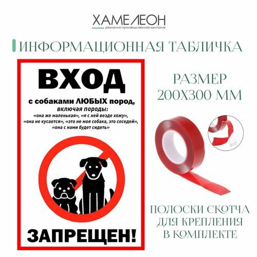 Найти - Информационная табличка Вход с собаками любых пород запрещен 200х300 мм