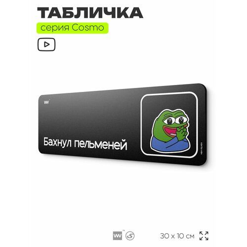 Найти - Табличка Бахнул пельменей, мем лягушка Пепе, шуточная прикольная табличка на дверь и стену черная, для офиса и дома, серия COSMO MEM, 30х10 см, Айдентика Технолоджи