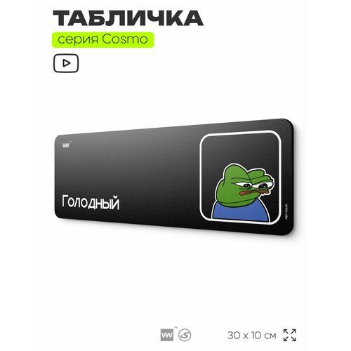 Найти - Табличка Голодный, мем лягушка Пепе, шуточная прикольная табличка на дверь и стену черная, для офиса и дома, серия COSMO MEM, 30х10 см, Айдентика Технолоджи