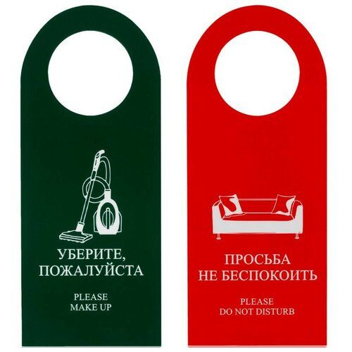 Вывеска на дверную ручку двухсторонняя Просьба не беспокоить / Уберите, пожалуйста изготовлена из ламинированного картона. Размер - 210x80 мм, диаметр отверстия - 50 мм. Поставляются упаковками по 100 штук. Срок годности - не ограничен. Толщина картона 1 мм.