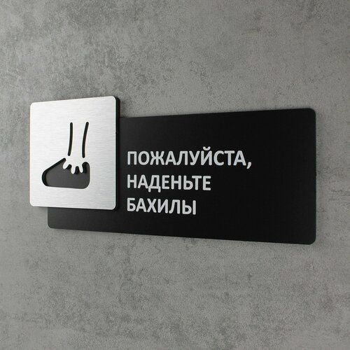 Найти - Табличка на дверь информационная для интерьера - Пожалуйста, наденьте бахилы, Царапанное серебро