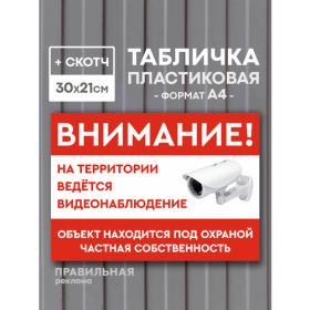 Найти - Табличка А4 Частная собственность / Ведётся видеонаблюдение ПВХ 3 мм. + скотч