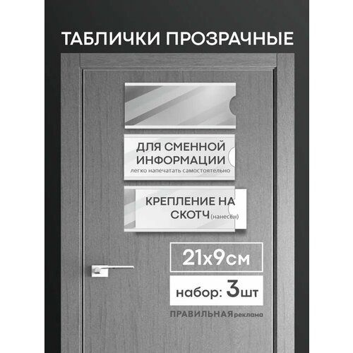 Найти - Табличка на кабинет / Карман на дверь, кабинет со сменной информацией 9х21 см. 3 шт (оргстекло 1,5 мм. + скотч)