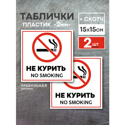 Найти - Табличка Не курить / Курение запрещено уличная, 15х15см - 2 шт. (УФ печать на пластике)