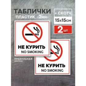Табличка "Не курить" – 2 шт. (15×15 см, УФ печать, пластик 2 мм)