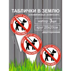 Найти - Табличка в землю Выгул собак запрещён / Собак не выгуливать 20х35 см. 3 шт. (алюминий, композит)