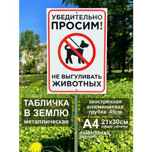Найти - Алюминиевая табличка на металлической трубе Выгул собак запрещён/Собак не выгуливать А4 (21х30см) белая / Трубка - 45см