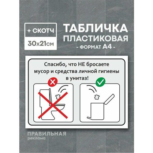 Табличка "Не бросайте мусор в унитаз" от "Правильная Реклама" - это не просто табличка, это инструмент для повышения культуры поведения в общественных местах.