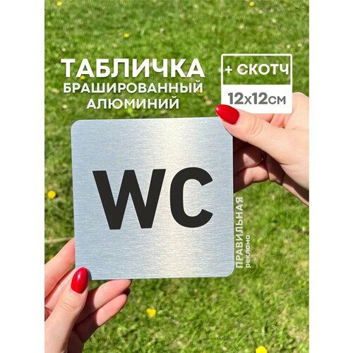 Найти - Алюминиевая табличка на туалет со скотчем, 12х12 см. 1 шт. / Табличка туалет, WC