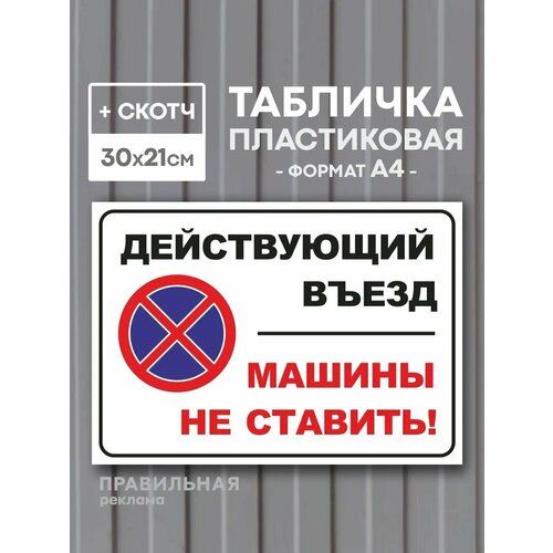 Найти - Табличка А4 Действующий въезд / Машины не ставить 30х21 см. (жесткий пластик / скотч / ламинация)