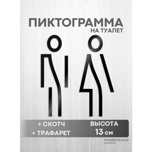 Найти - Табличка на туалет / Пиктограмма на туалет (черный акрил 3 мм. + скотч + трафарет). Минималистичная.