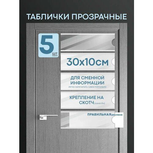 Найти - Табличка на дверь со сменной информацией - 30х10 см, 5 шт. (ПЭТ 1 мм. + скотч)
