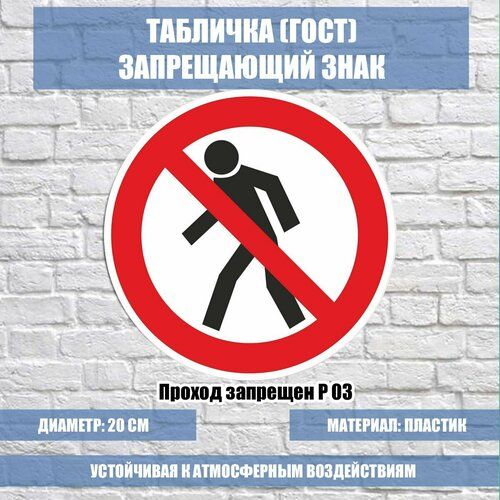Табличка Проход запрещен P 03 из пластика размером 20 см х 20 см имеет следующие характеристики:
