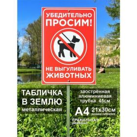 Найти - Алюминиевая табличка на металлической трубе Выгул собак запрещён/Собак не выгуливать А4 (21х30см) красная / Трубка - 45см