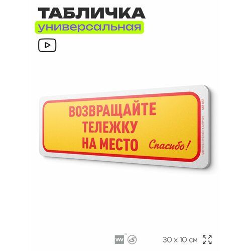 Найти - Табличка Возвращайте тележку на место, на дверь и стену, информационная, пластиковая с двусторонним скотчем, 30х10 см, Айдентика Технолоджи