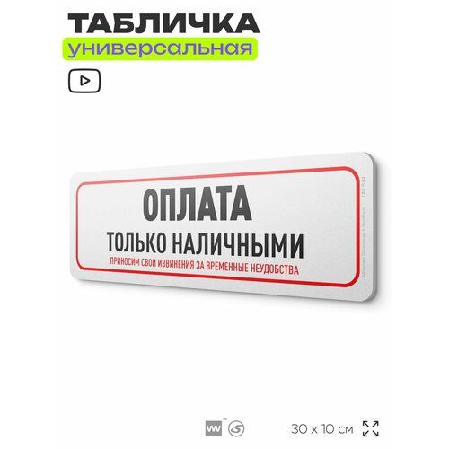 Найти - Табличка Оплата только наличными, на дверь и стену, информационная, пластиковая с двусторонним скотчем, 30х10 см, Айдентика Технолоджи