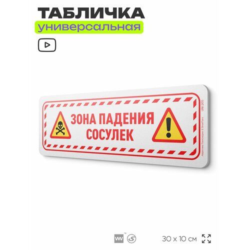 Найти - Табличка Зона падения сосулек, на дверь и стену, информационная, пластиковая с двусторонним скотчем, 30х10 см, Айдентика Технолоджи