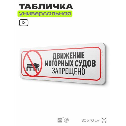 Найти - Табличка Движение моторных судов запрещено, на дверь и стену, информационная, пластиковая с двусторонним скотчем, 30х10 см, Айдентика Технолоджи