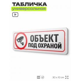 Найти - Табличка Объект под охраной, на дверь и стену, информационная, пластиковая с двусторонним скотчем, 30х10 см, Айдентика Технолоджи