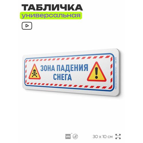 Найти - Табличка Зона падения снега, на дверь и стену, информационная, пластиковая с двусторонним скотчем, 30х10 см, Айдентика Технолоджи