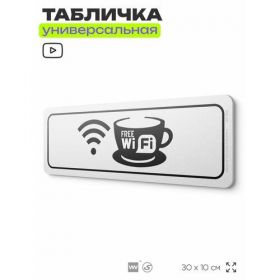 Найти - Табличка Free Wi-Fi, на дверь и стену, информационная, пластиковая с двусторонним скотчем, 30х10 см, Айдентика Технолоджи