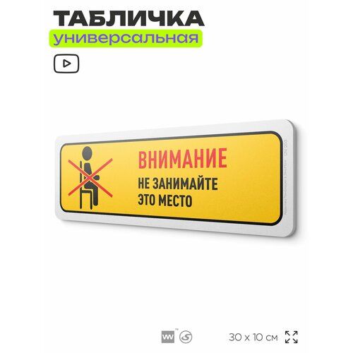Найти - Табличка Внимание, не занимайте это место, на дверь и стену, информационная, пластиковая с двусторонним скотчем, 30х10 см, Айдентика Технолоджи