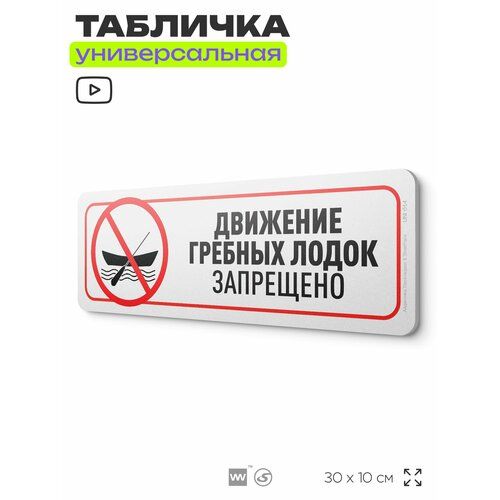 Найти - Табличка Движение гребных лодок запрещено, на дверь и стену, информационная, пластиковая с двусторонним скотчем, 30х10 см, Айдентика Технолоджи