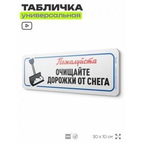 Найти - Табличка Очищайте дорожки от снега, на дверь и стену, информационная, пластиковая с двусторонним скотчем, 30х10 см, Айдентика Технолоджи