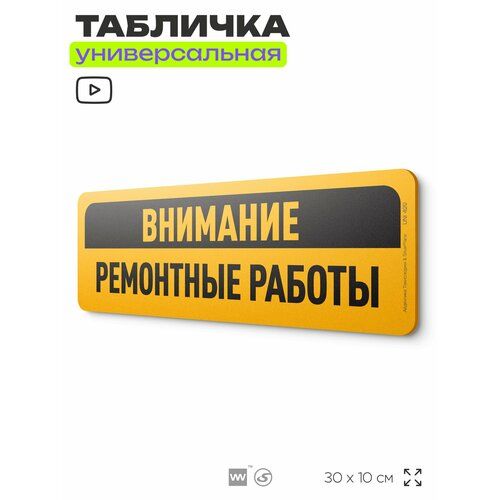 Найти - Табличка Внимание, ремонтные работы, на дверь и стену, информационная, пластиковая с двусторонним скотчем, 30х10 см, Айдентика Технолоджи