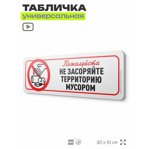 Найти - Табличка Не засоряйте территорию мусором, на дверь и стену, информационная, пластиковая с двусторонним скотчем, 30х10 см, Айдентика Технолоджи