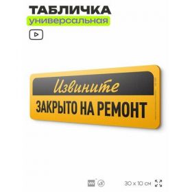 Найти - Табличка Закрыто на ремонт, на дверь и стену, информационная, пластиковая с двусторонним скотчем, 30х10 см, Айдентика Технолоджи