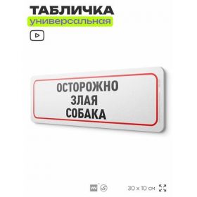 Найти - Табличка Осторожно, злая собака, на дверь и стену, информационная, пластиковая с двусторонним скотчем, 30х10 см, Айдентика Технолоджи
