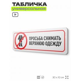 Найти - Табличка Просьба снимать верхнюю одежду, на дверь и стену, информационная, пластиковая с двусторонним скотчем, 30х10 см, Айдентика Технолоджи