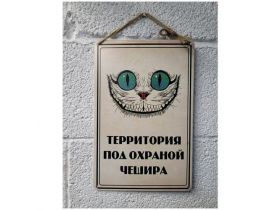 Территория под охраной чешира. Табличка металлическая, картина на жести, декор интерьера, плакат, постер, подарок 101788405358