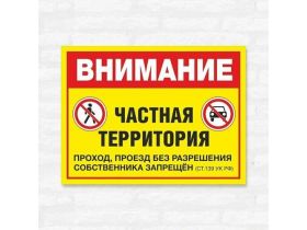 Табличка "Внимание Частная территория проход, проезд без разрешения собственника запрещён (ст.139 ук рф)", 27х20 см, ПВХ 101996412348