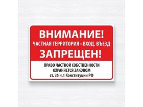Табличка "Внимание частная территория вход въезд запрещен", 36х24 см, ПВХ 101998259496