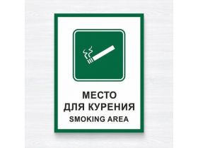 Табличка "Место для курения, smoking area", 33х25 см, ПВХ 101998270037
