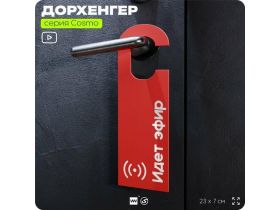 Дорхенгер "Идет эфир", табличка на ручку двери, красный, пластиковая, серия COSMO, Айдентика Технолоджи 103693558777