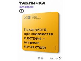 Табличка с правилами офиса При знакомстве и встрече - встаньте из-за стола 18х18 см, пластиковая, SilverPlane x Айдентика Технолоджи 103696285908