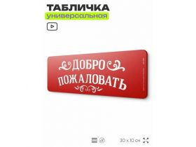 Табличка "Добро пожаловать", на дверь и стену, информационная, пластиковая с двусторонним скотчем, 30х10 см, Айдентика Технолоджи 4609686606