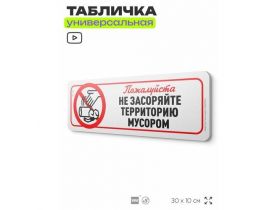 Табличка "Не засоряйте территорию мусором", на дверь и стену, информационная, пластиковая с двусторонним скотчем, 30х10 см, Айдентика Технолоджи 4609686610