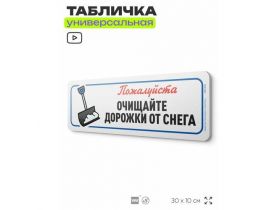 Табличка "Очищайте дорожки от снега", на дверь и стену, информационная, пластиковая с двусторонним скотчем, 30х10 см, Айдентика Технолоджи 4609686604