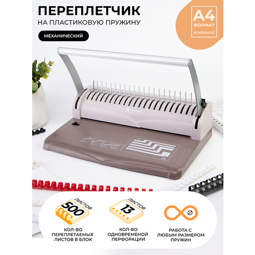 Качественный механический переплетчик/брошюровщик на пластиковую пружину БП-13+ это обновленная модель переплетчика гелеос БП-13 в новом исполнении. Подходит для использования дома, в малом и среднем офисе, для школы. С его помощью вы сможете оформить финансовые отчеты и каталоги, презентации, прайс-листы, техническую документацию.