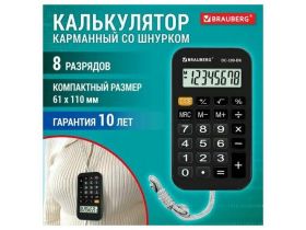 Калькулятор карманный со шнурком BRAUBERG DC-109-BK (61x110мм), 8 разрядов, черный, 272642 103750770724