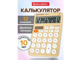 Калькулятор настольный 12 разрядов бухгалтерский для школы и офиса, 157х106 мм, с большими кнопками, двойное питание, бежевый, Brauberg Style, 272967 1198140171