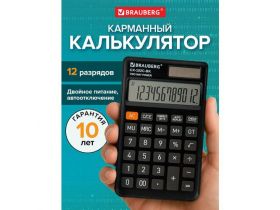 Калькулятор карманный маленький мини для школы и офиса, бухгалтерский 12 разрядов, 76x126 мм, двойное питание, черный, Brauberg CX-102C-BK, 272647 4366927408