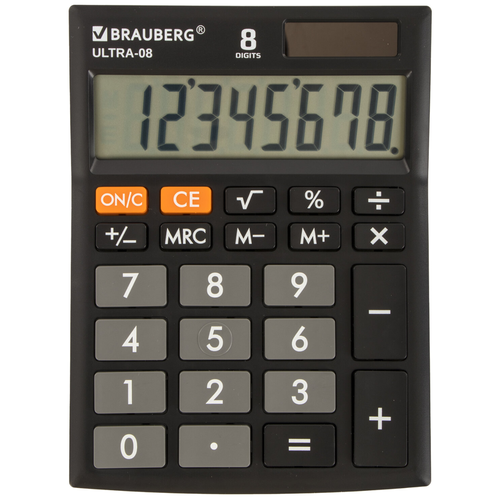 Настольный калькулятор BRAUBERG ULTRA-08-BK. Большой яркий дисплей, устойчивый корпус с прорезиненными ножками и крупная клавиатура с цветной дифференциацией позволяют работать эффективнее с максимальным комфортом.