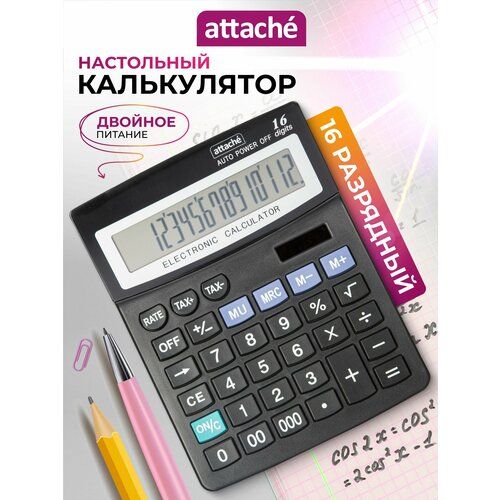 Найти - Калькулятор настольный Attache ATC-222-16F, черный 2