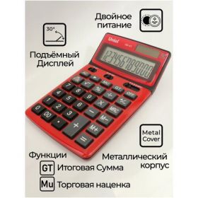 12 разрядный, двойное питание, функция "Итоговая сумма", функция "Торговая наценка", подъемный дисплей, металлическая поверхность, размер: 173х106х26мм