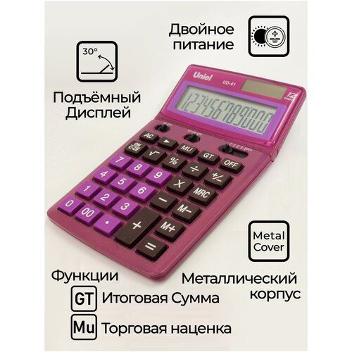 Найти - Настольный калькулятор с двойным питанием, металл Uniel UD-41PN Розовый